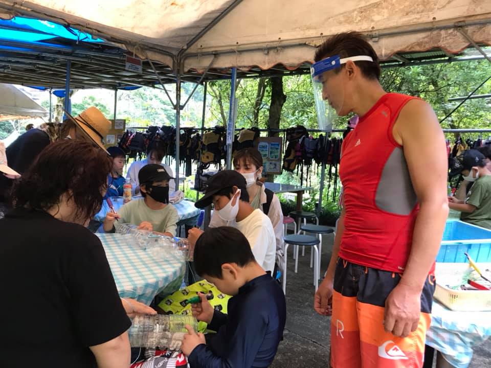魚とり教室 今日は人気イベント「魚とり教室」を実施しました。 わたくしが三股町淡水漁協の理事として指導😃 ペットボトルでトラップをつくり、渓流で魚をつかまえます。みんなソーシャルディスタンスと声をかけながら活動。 ワナを仕掛けて、空いた時間でヤマメつかみ取り。 トラップ引き揚げて、一番たくさんの子どもさんは18尾も入ってました。合計60尾以上の大漁でした😆 今日も涼しい風がふきぬける渓流にたくさんの笑顔が集まっています😊