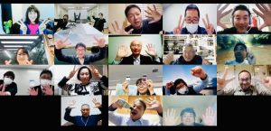 ★情報誌かわともチームからは3月発行に向けて順調に進んでいると報告終了後、オンライン会議による、模擬ルーム会議の技術習得。