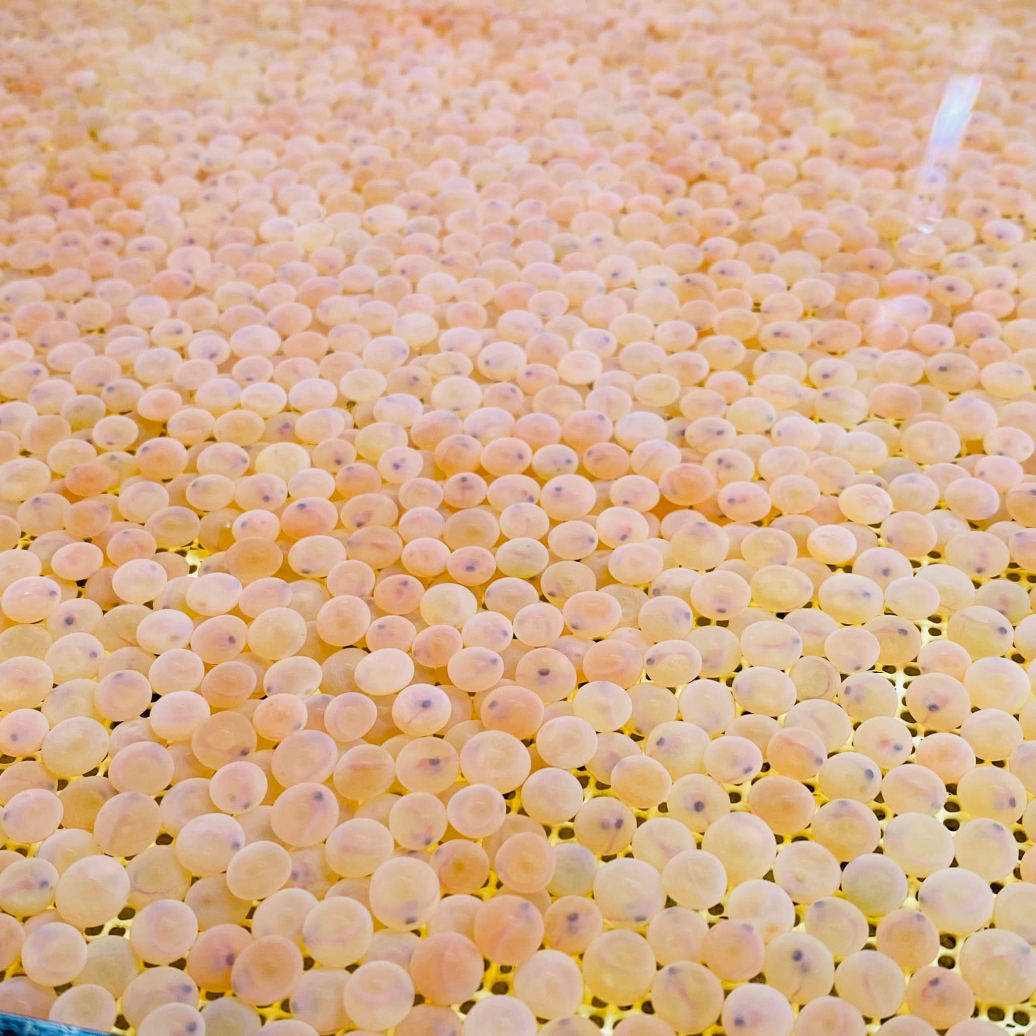 ヤマメ発眼卵の検卵 防寒着を着込んで生命の時間に合わせての作業。 現在、夜中12時。昼間に公の仕事が続いているので、夕方から集中して作業しています。 今日も発眼率が高く検卵作業がサクサクと進みました。 明日は、広島と神奈川県、群馬県、宮城県に発眼卵出荷。養魚場の他に個人のお客さまも。みなさん、いまかいまかと楽しみに待っておられます しゃくなげの森から、最高のヤマメ発眼卵をお届け致します