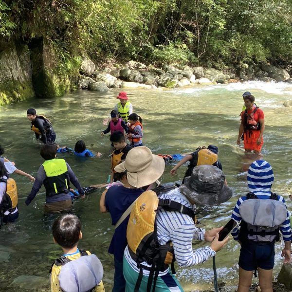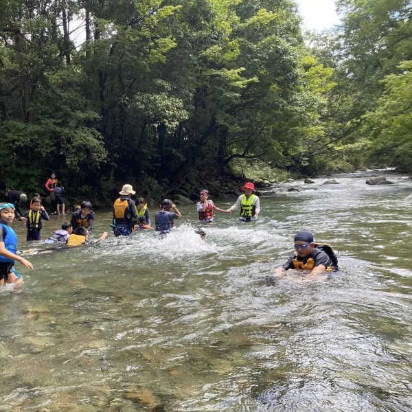 8月19日、川遊び安全教室 今日は川遊び安全教室が開かれました。 保護者を含め合計87名が参加 昨日の雨で少し増水している状態でしたが、たくさんの子供達がライフジャケットを装着して安全に楽しんでくれました 川遊びは子どもも大人もライフジャケットを着けて安全に遊びましょう。 冷たい渓流の川流れは最高です。 いつもヤマメつかみ取りは大盛況! ヤマメを入れた途端に大興奮状態 楽しい歓声が渓流に響きます