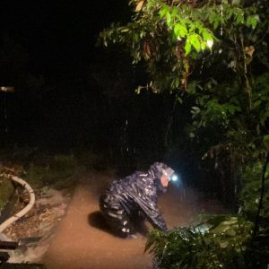しゃくなげの森のヤマメ養殖場では、午前2時頃に河川水が急に泥水に変化、上流で崖崩れがあったと思われる。