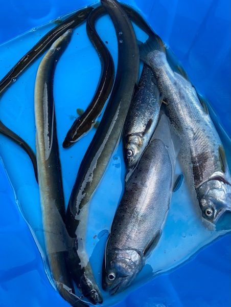 ウナギ4尾、尺ヤマメ2、イダ1の収獲。