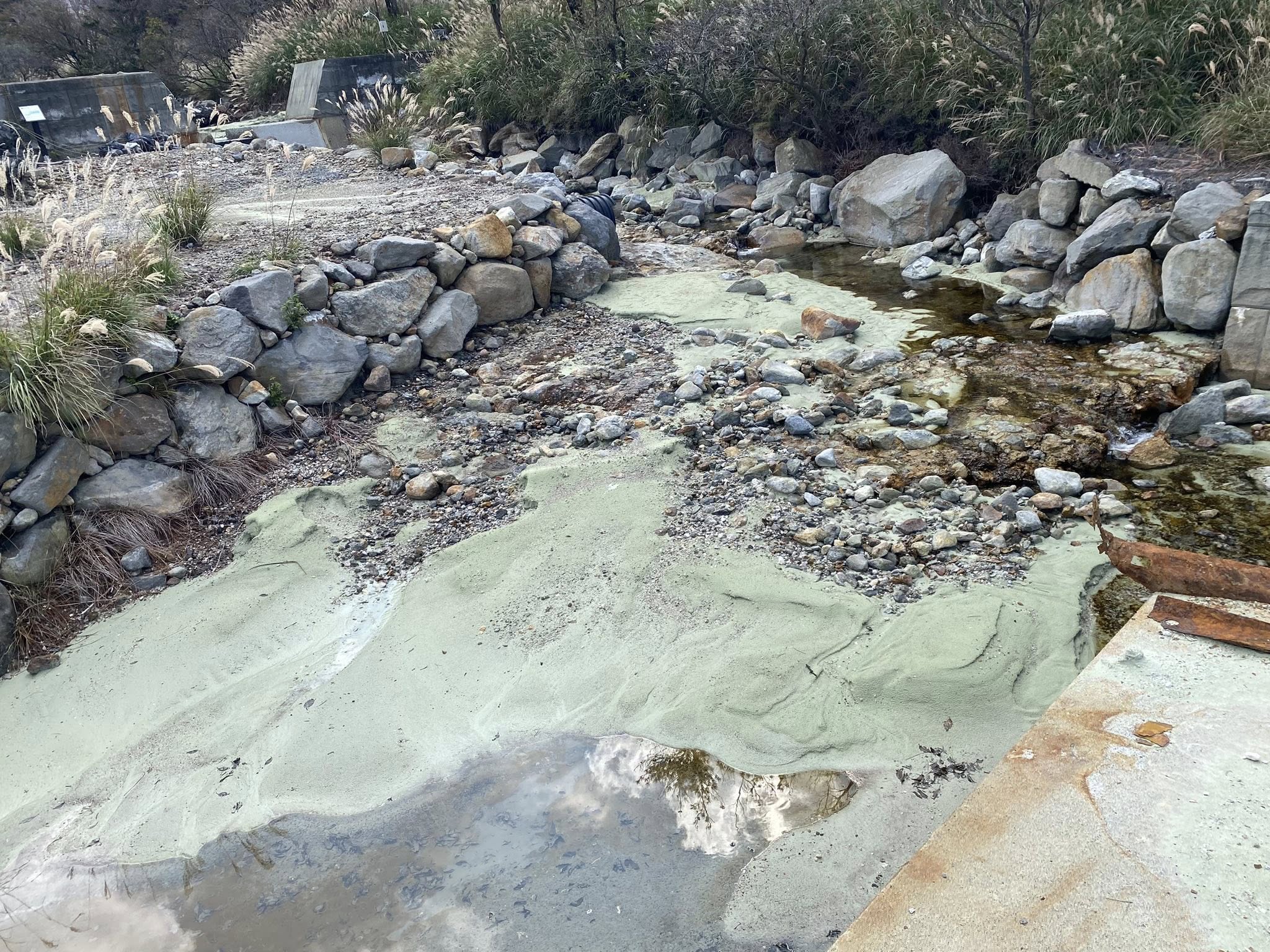 硫黄山から流れている川の水は現在PH2を下回る強酸性との事でした。
