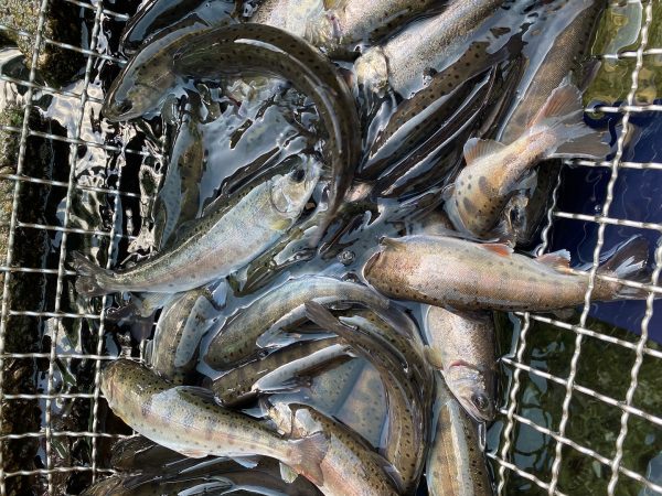 また、「黄金イクラ」と呼ばれるヤマメの卵の生産も行っており、現在は秋のヤマメの出荷が最盛期を迎えています。しゃくなげの森は、九州一円へ出荷を行う生産元として、今週は湯布院や菊池方面へも出荷を予定しています。