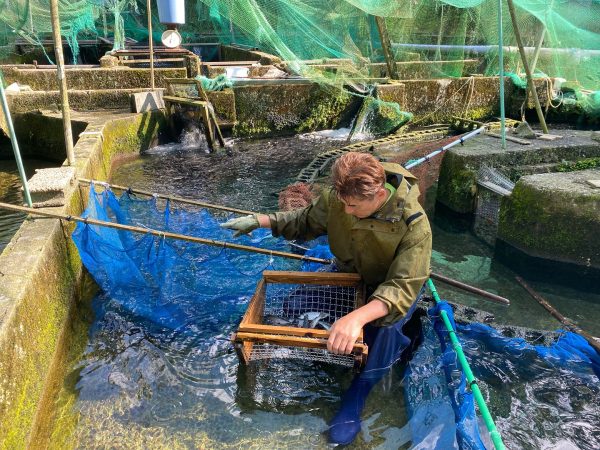 希少な高級魚「尺ヤマメ」は、ミシュラン星獲得店をはじめとする高級料理店で使用されています。ヤマメは非常にデリケートで、養殖が最も難しい魚のひとつとされていますが、特に「尺ヤマメ」と呼ばれる大きな個体を育て上げるには、約2年もの歳月が必要で、大きいものでは全長60cm・重さ2kgにまで成長します。