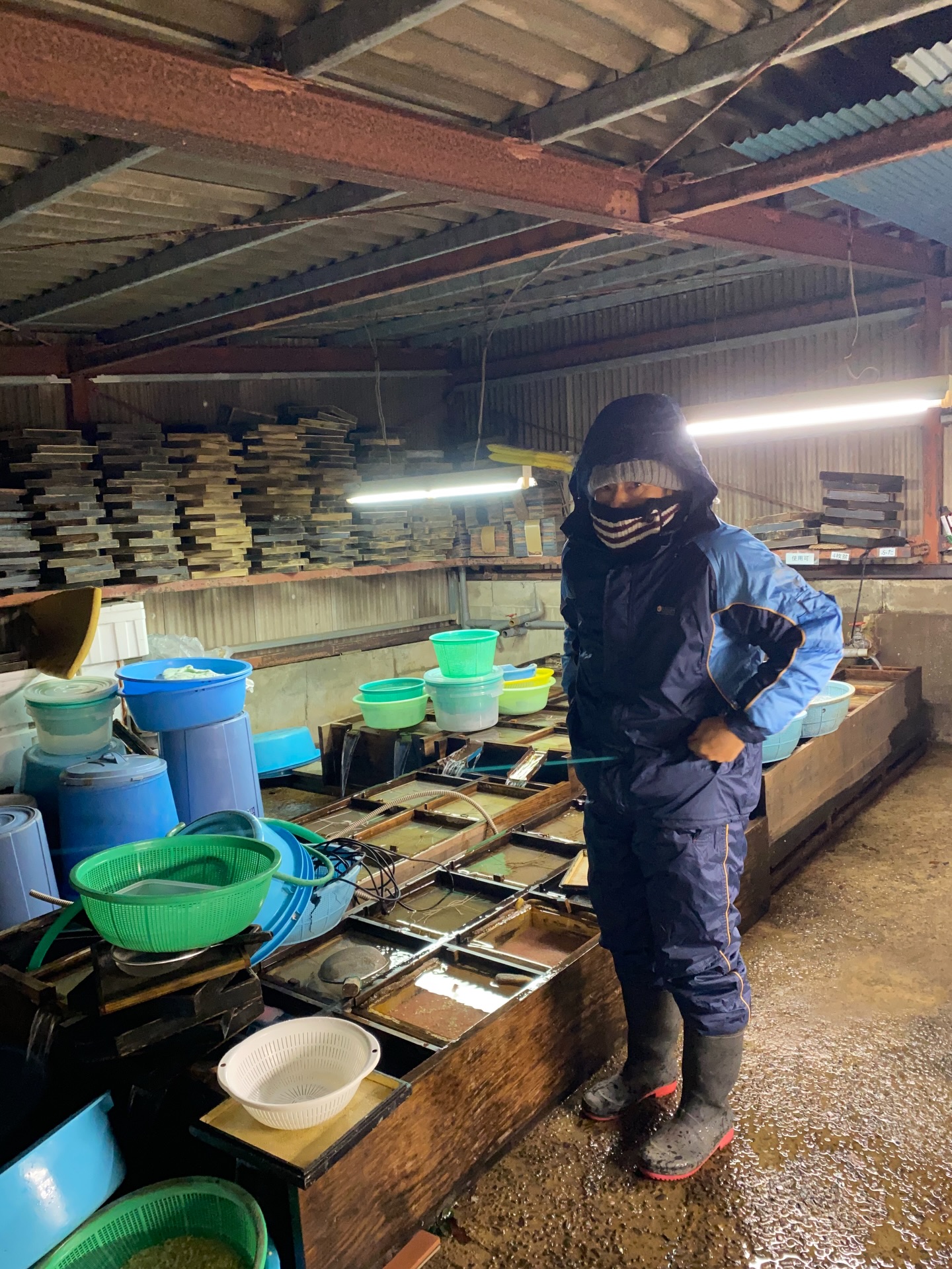 夜は寒いので上下防寒着に身を包み作業すること4時間。