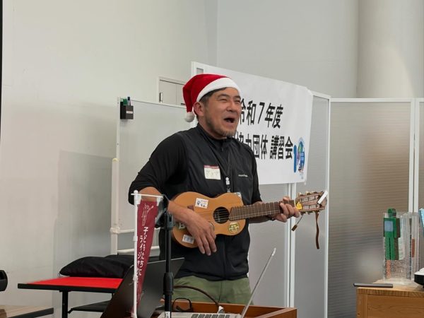 活動を始めたきっかけや、想いを持って活動しているからこそ感じた水難事故ニュースの悔しいおもいや、行政とタッグを組んで進めた方法や現在の状況。最後には歌まで歌って。ライジャケサンタの熱い言葉でその思いを伝えていただき、会場の九州中の川の達人が共感していました。