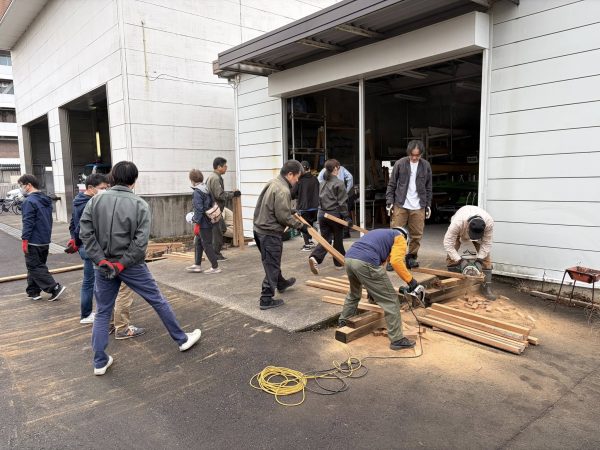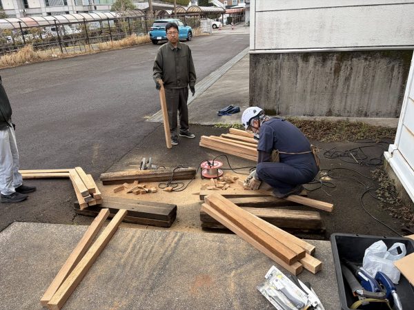 大淀川流域ネットワークと宮崎河川国道事務所のぼら NPO法人大淀川流域ネットワークと国土交通省宮崎河川国道事務所、合わせて20名が参加しての木材切り込み作業がありました。 宮崎の国道にあるワシントニアパームの植え替えに伴い、不要になった材を加工して、宮崎湿地に木道を設置します。 本日は、その準備作業の木材切り込み作業を行いました。