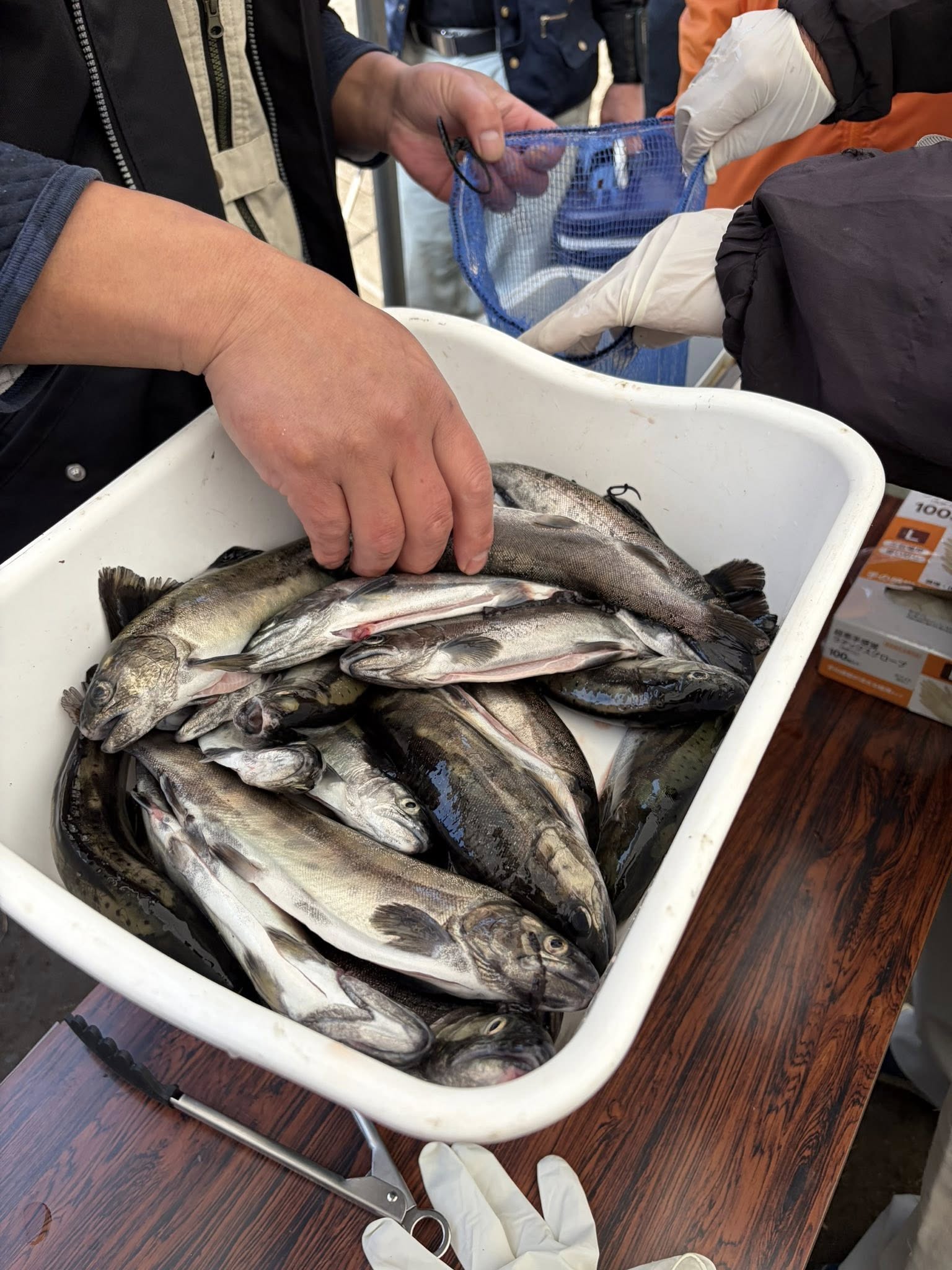 ヤマメ釣り大会 川内川上流淡水漁業協同組合主催のヤマメ釣り大会が開催されました。 今年は気温も高く良く釣れました。 最高は54尾。大物は32cm、最高重量8.6kg 午前中だけでこれだけの釣果はすごいです。 参加のみなさん笑顔で、組合長が最高の笑顔でした。 ※ヤマメ釣りは鑑札が必要です。