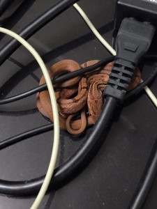 自然が豊かすぎた ((((;゚Д゚))))))) 事務所の机の上にある、PCの上に・・・ヘビ!!! ^_^; マムシではないけど・・・。ヤマガカシかなァ?小さいヘビですが驚きました(≧∇≦) それだけ自然が豊かだということです。 ※FaceBookのお友達によると、シマヘビの幼蛇ではないかということでした。