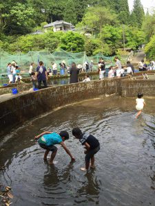 こどもの日もヤマメ釣りに、つかみどりが大盛況でした。
