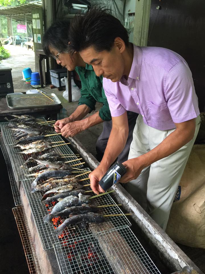第14回夏のやまめ祭り始まりました 第14回夏のやまめ祭り、始まりました〜\(^o^)/ 長田保育所と長田小児童を招待して、オープニングのヤマメつかみ取りは盛り上がりました〜渓流に歓声が響き渡り、いよいよ夏がはじまったと思う瞬間でした。🐟もちろんつかみ取りのあとはヤマメ炭火塩焼きでみんな笑顔がこぼれていました。 私も塩焼きをがぶり、間違いない美味しさを確認しました。😄 UMK、毎日新聞、南日本新聞の取材も入り一段と盛り上がりました。