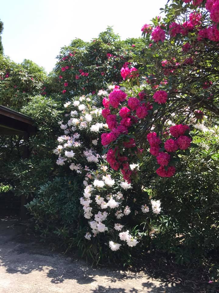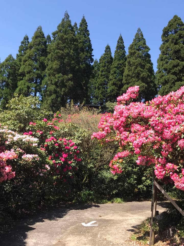4月12日しゃくなげの森開花情報 しゃくなげの森開花情報、4月12日。 今日の陽気で早咲きのシャクナゲ「太陽」や「アーボレウム」がほぼ満開。 「アカボシ」や「エレガンス」など標準の開花もかなり進んでいます。 今日のような陽気が3日も続けば開花が増え、圧巻の豪華な花園になります。 北九州から来られた御夫婦に、ここを目指して来てよかった、いい思い出ができましたと笑顔をいただきました。