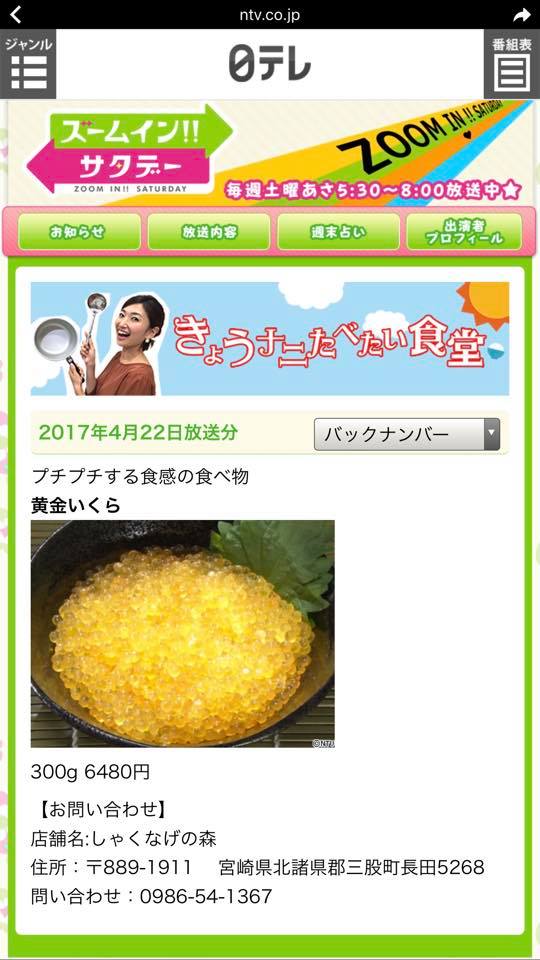 黄金いくらが、ズームインサタデーで紹介されました 黄金いくらが、日本テレビのズームインサタデーで紹介されました〜〜 贅沢お取り寄せコーナー「プチプチな食べ物」 \(^-^)/ http://www.ntv.co.jp/z-sat/nanitabe/index.html