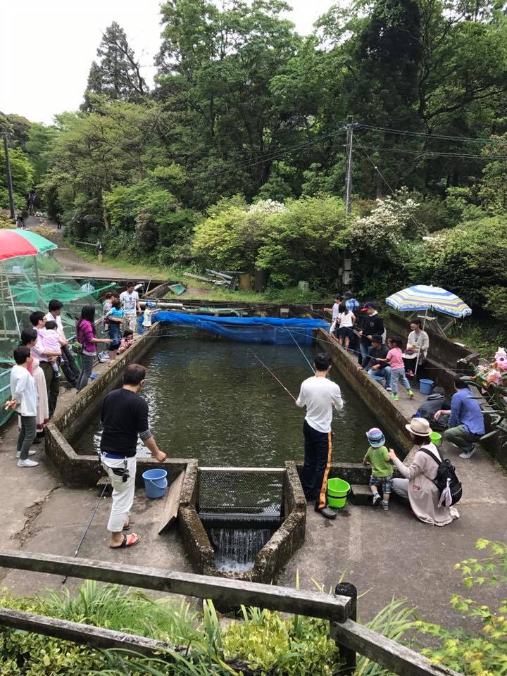 ヤマメ釣りが賑やかです。釣れるたびに歓声がこだましています。